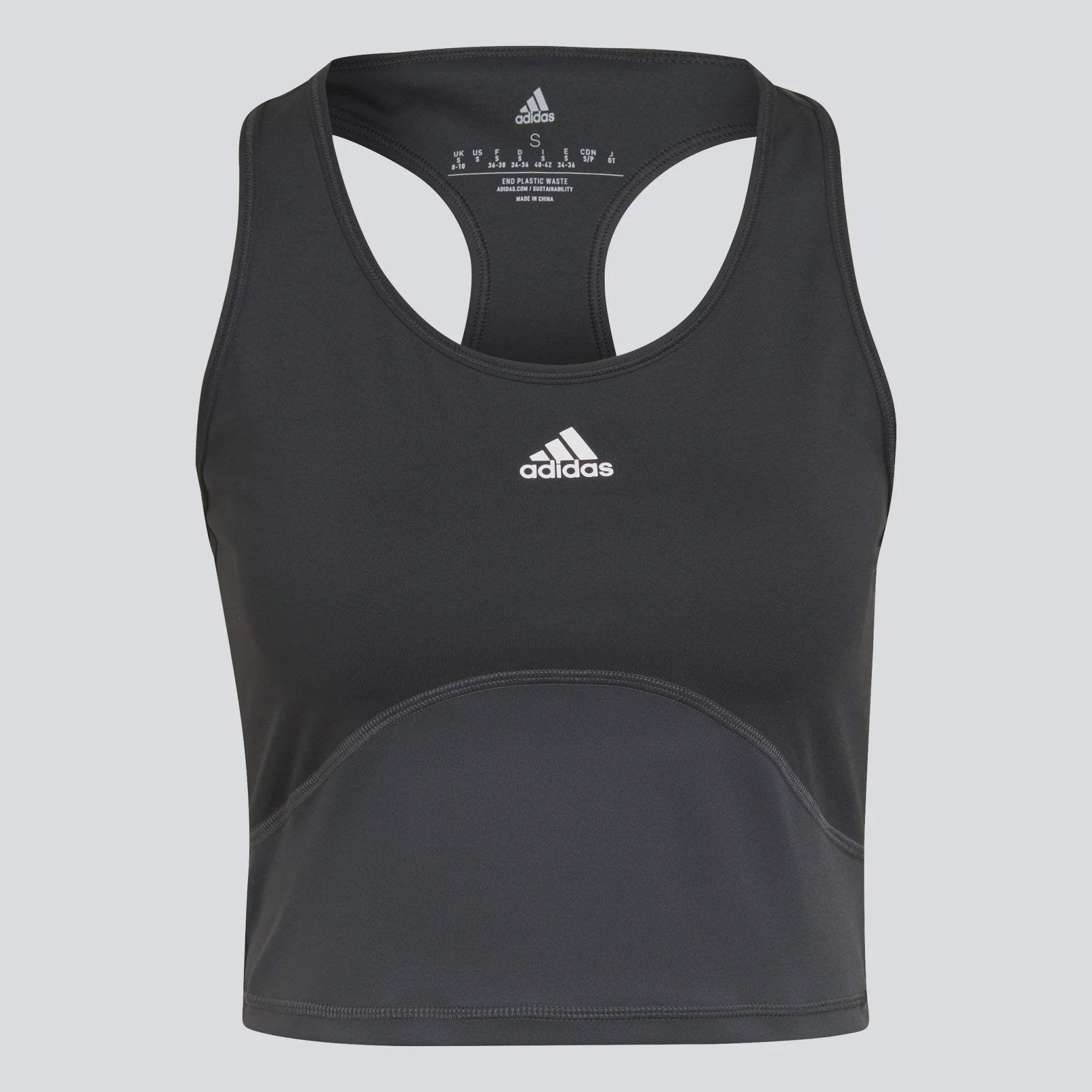 You always bring the heat to your training routine. Reach your squad goals and break your personal records in true adidas style when you wear this tank top. Versatility is your middle name, so whether you're at spin class or doing sprints, this top will keep you dry with AEROREADY. A crop cut makes it pair up well with high-rise workout gear.