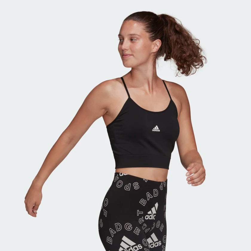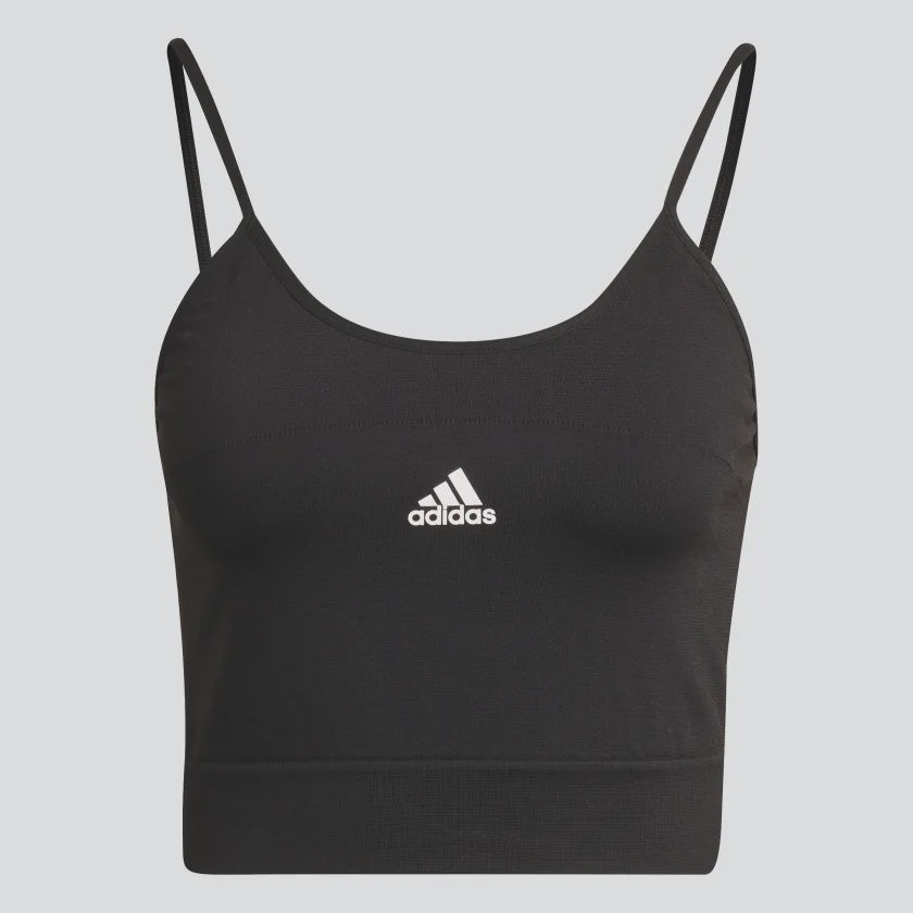 You know that feeling you get after a good workout? Like you could take on the world? Pull on this training bra top and savor the feeling 24/7. The easy, seamless design looks just as good sweating it out in the gym as it does paired with jeans on the weekend. No matter how you style it, adidas AEROKNIT helps manage moisture for distraction-free comfort. Made with a series of recycled materials, and at least 60% recycled content, this product represents just one of our solutions to help end plastic waste.
