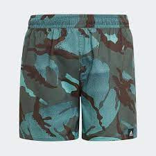 From the high dive to the waterslide, these kids' adidas swim shorts are built for water play. They're made with durable, chlorine-resistant fabric in a bold camo print. Mesh inner briefs provide comfort and coverage. This product is made with Primegreen, a series of high-performance recycled materials.