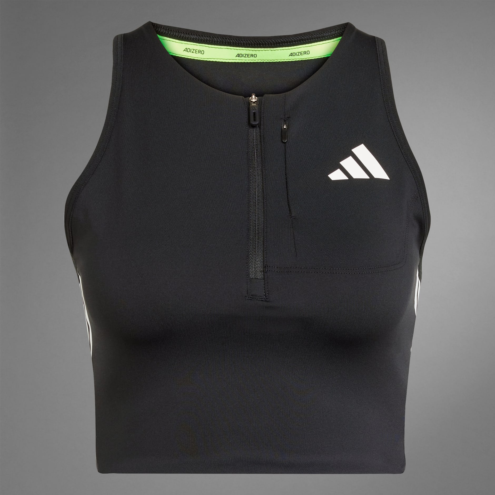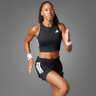 Log miles, build endurance and unlock new speeds with the comfort and performance of this adidas running crop top. It's designed to fit tight, providing an aerodynamic flow and barely-there feel. CLIMACOOL wicks and disperses sweat for cool, dry and distraction-free performance. When you need an energy boost fast — the chest and mesh pockets ensure your energy gels are nearby. CLIMACOOL helps you manage sweat with materials that wick and manage sweat quickly. Its fast-dry fibres give you a fresh-skin feel. This product is made with at least 70% recycled materials. By reusing materials that have already been created, we help to reduce waste and our reliance on finite resources and reduce the footprint of the products we make.