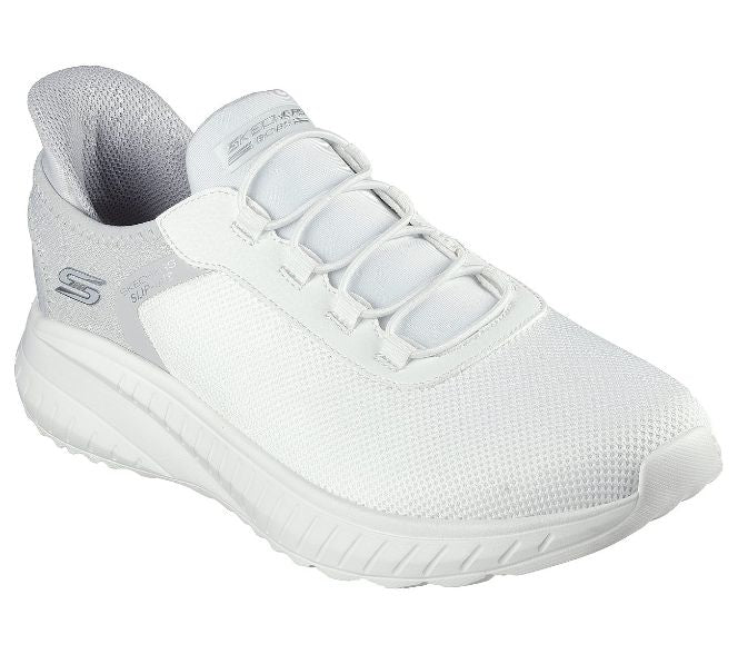 Step into athletic style and comfort wearing Skechers Hands Free Slip-ins®: BOBS Sport™ Squad Chaos - Tough Walk. Designed with our Exclusive Heel Pillow™, this fashion style features a mesh and synthetic upper with stretch laces and a cushioned Skechers Memory Foam™ insole.