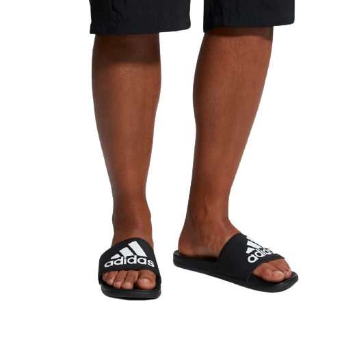 Slip into these men's slides for easy-to-wear comfort. A contoured footbed features Cloudfoam Plus for a super-soft cushioned feel. The bandage-style upper features an Adidas Badge of Sport that shows your brand love.