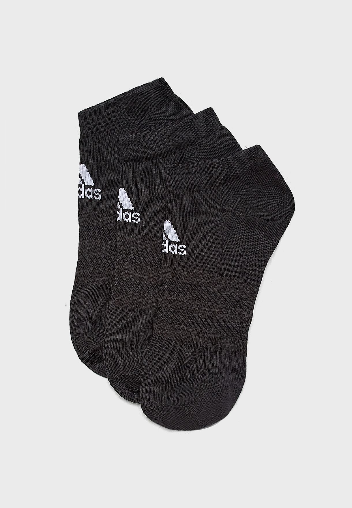 Built for everyday comfort, this trio of low-cut socks has a thin, lightweight feel. The cottony design has built-in arch support for a stay-put fit. They're finished with an Adidas logo just below the ribbed cuff.
