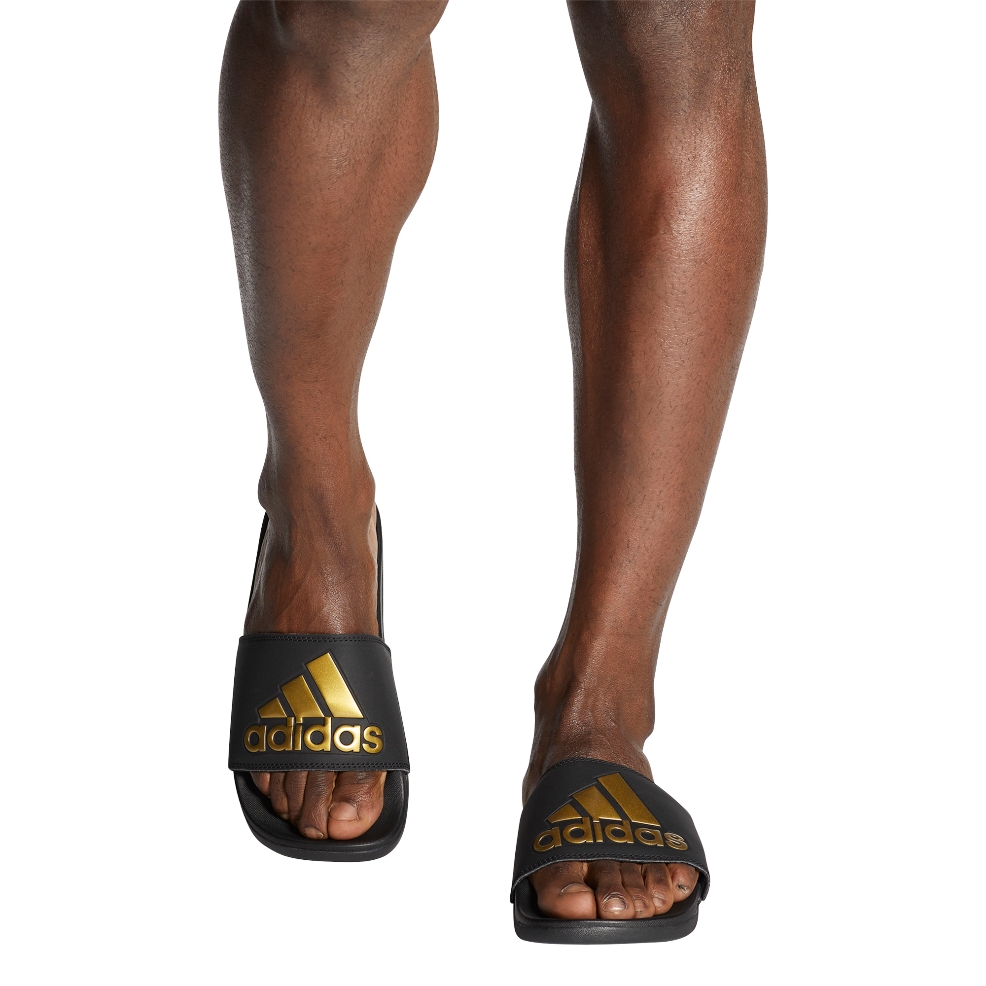 Slip into these men's slides for easy-to-wear comfort. A contoured footbed features Cloudfoam Plus for a super-soft cushioned feel. The bandage-style upper features an Adidas Badge of Sport that shows your brand love.