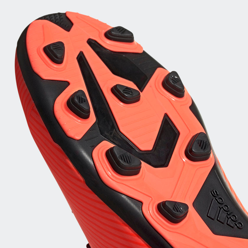 Dodge expectations. Zig when they think you'll zag. Pass when they expect you to move. Power your unpredictability in the Adidas Nemeziz 19.4. These juniors' football boots offer support and flexibility for the agile player. The versatile design includes an outsole tuned for hard ground, firm ground and artificial grass. A soft upper morphs to your foot's shape for a personalised feel.