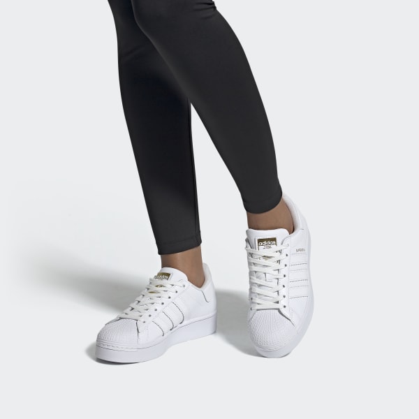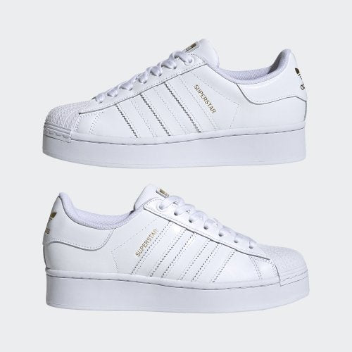 After debuting as a basketball shoe in the 1970s, the sneaker was later celebrated in the hip-hop scene. Today the Adidas Superstar is a real streetwear icon and it is impossible to imagine our feet without it. In this version, it comes especially for women. With its platform sole, it looks particularly high-quality and stylish. Mainstream isn't your thing? The legendary sneaker with the shell toe shows itself here in a chunky look. Do you want a brilliant performance? Then the clear lines and the shiny patent leather on the 3-Stripes and the detail in the heel area are just right for you. So you will cause a stir at every opportunity!