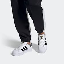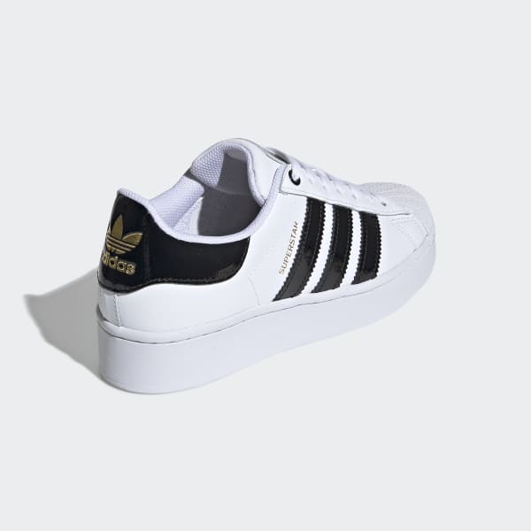 After debuting as a basketball shoe in the 1970s, the sneaker was later celebrated in the hip-hop scene. Today the Adidas Superstar is a real streetwear icon and it is impossible to imagine our feet without it. In this version, it comes especially for women. With its platform sole, it looks particularly high-quality and stylish. Mainstream isn't your thing? The legendary sneaker with the shell toe shows itself here in a chunky look. Do you want a brilliant performance? Then the clear lines and the shiny patent leather on the 3-Stripes and the detail in the heel area are just right for you. So you will cause a stir at every opportunity!