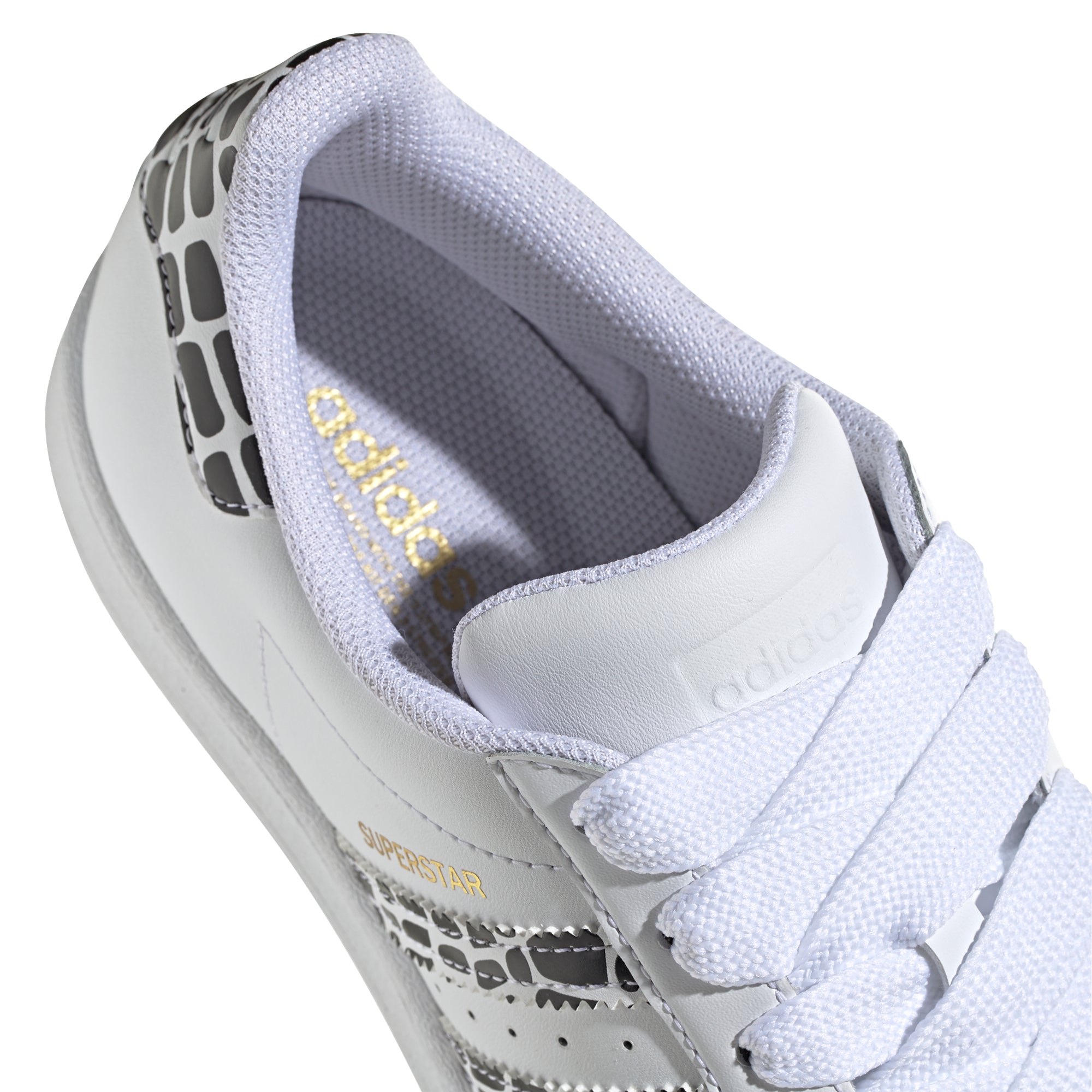 The one. The only. The adidas Superstar trainer. Introduced in 1970, this low top B-ball trainer was catapulted to fame by the pioneering underground musicians who embraced its casual, sporty style. These adidas Superstar Shoes have the same smooth leather upper and rubber shell toe as the original. Trendy animal print updates the 3-Stripes and heel patch. They've got fat laces for classic hip hop style.