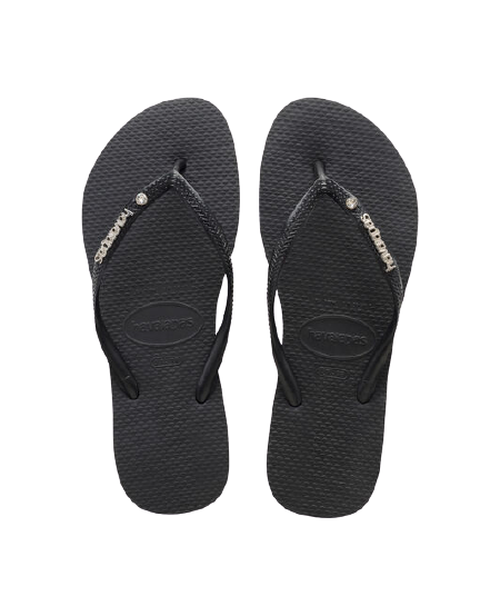 HAVAIANAS SLIM METAL LOGO AND CRYSTAL - BLACK
