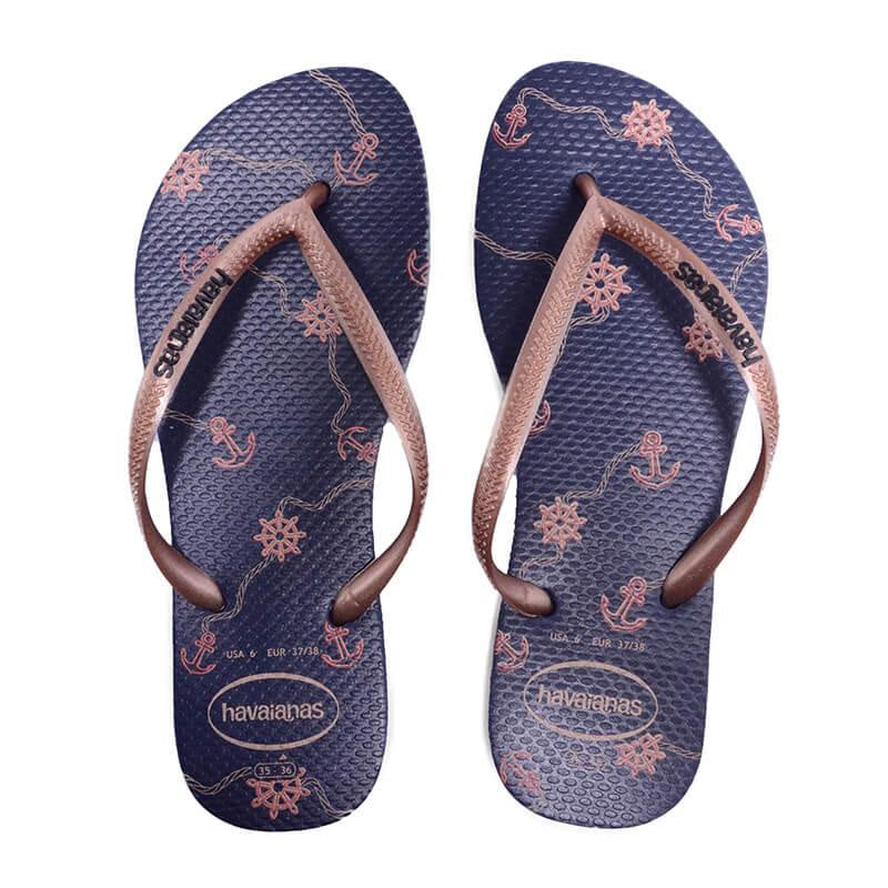 HAVAIANAS SLIM NAUTICAL - NAVY BLUE/ROSE GOLD