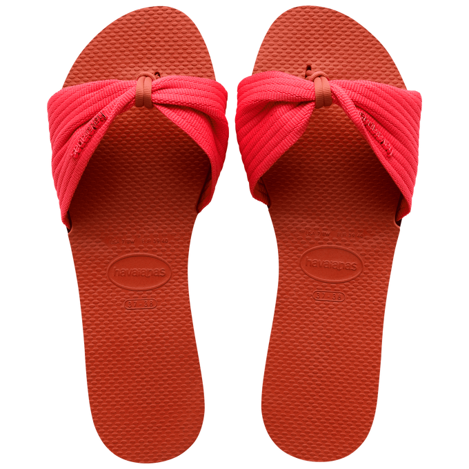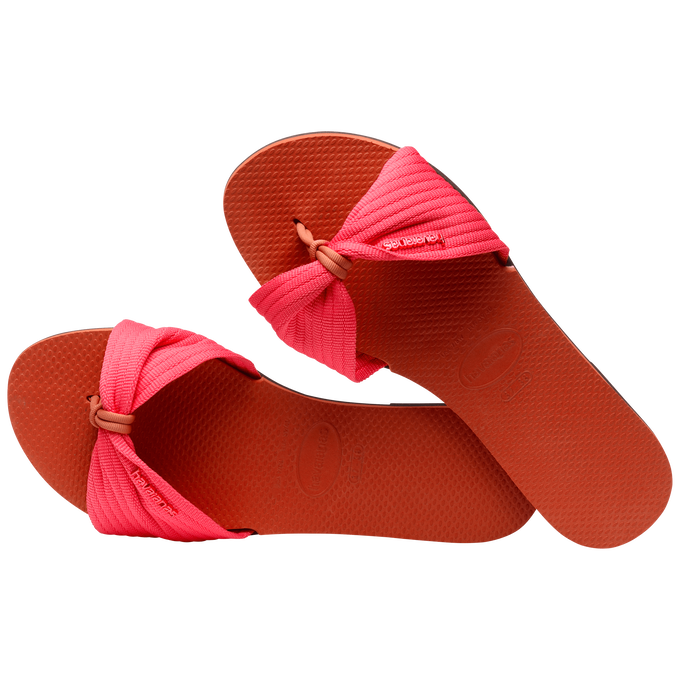 The Havaianas St Tropez Basic is pure charm and comfort. With its exclusive fingertip and creased fabric strap, it is the first version of St Tropez that is already water-resistant and quick-drying. In this version, the fabric is monocolored, in contrasting colors with the soles, to make any look more modern.