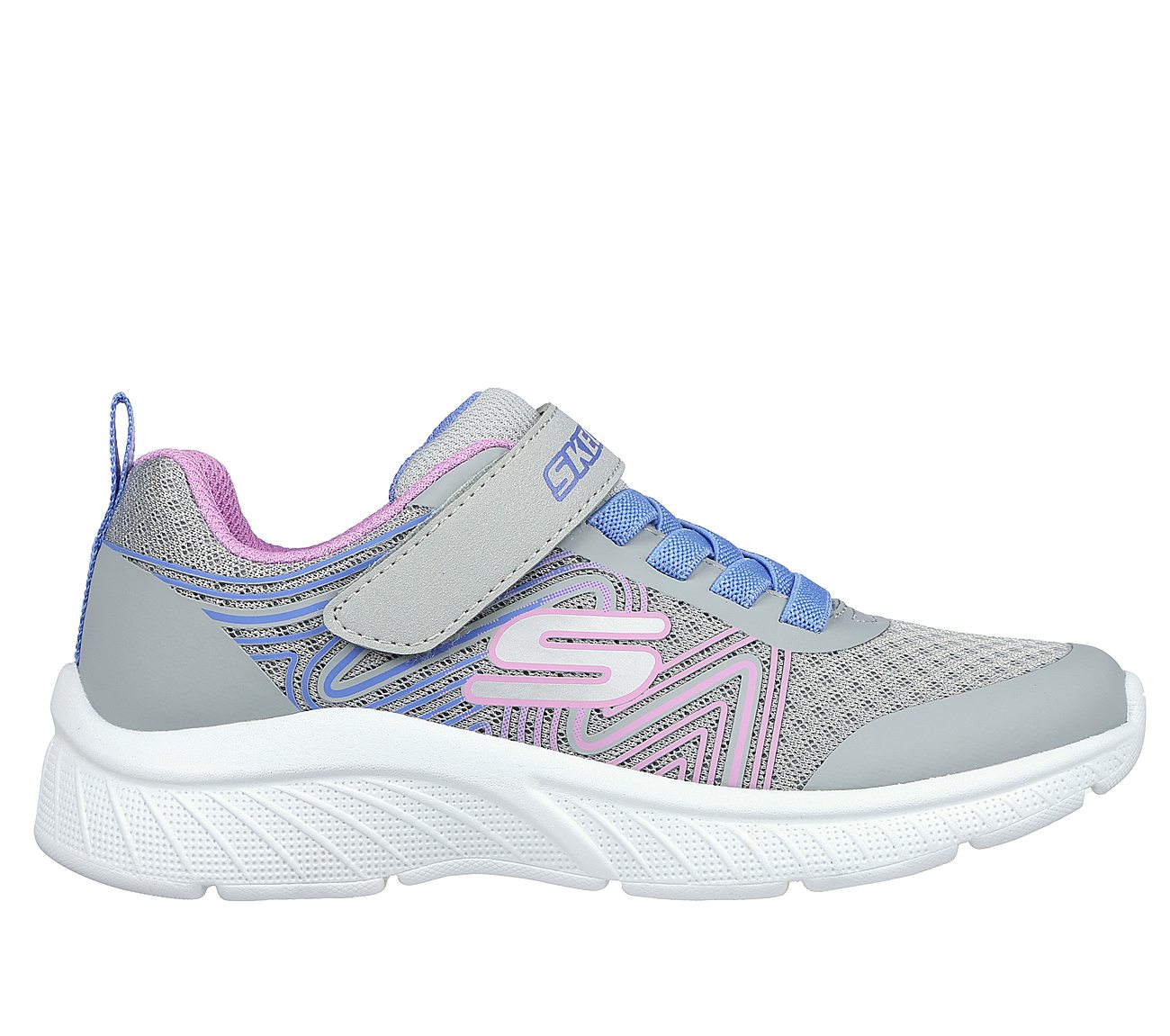 Easy-to-wear comfort meets sporty style in Skechers Microspec Plus - Swirl Sweet. This lightweight design features a mesh and synthetic upper with stretch laces and an adjustable instep strap.