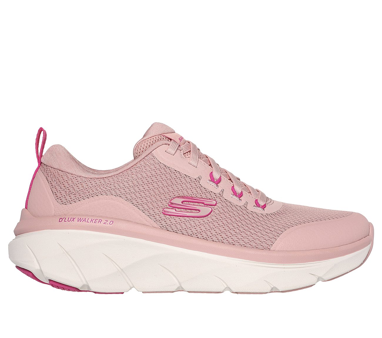 Enjoy longer walks with supportive comfort wearing Skechers Relaxed Fit®: D'Lux Walker® 2.0 - Radiant Rose. This sporty stretch-laced style features a flat mesh upper with synthetic hotmelt trim, well-cushioned midsole, and a cushioned Skechers Air-Cooled Memory Foam® insole.