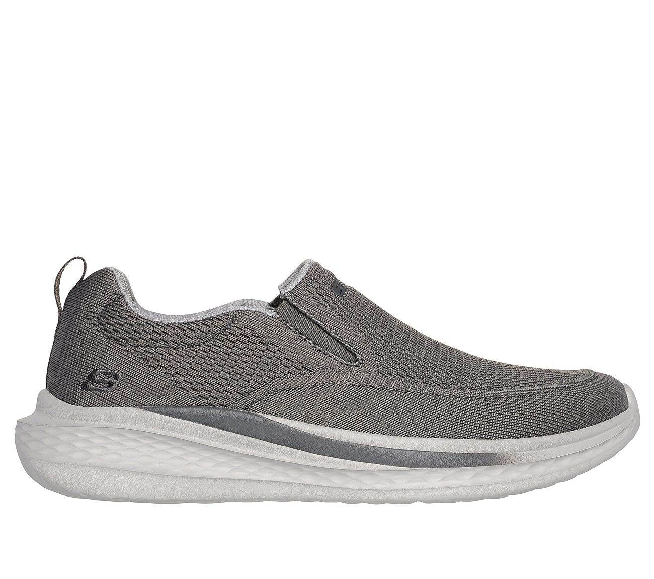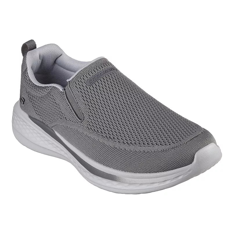 Sleek athletic style arrives with signature comfort in Skechers Relaxed Fit®: Slade - Royce. This laceless fit style features a mesh upper with a charcoal-infused Skechers Air-Cooled Memory Foam® insole and Skechers Goga Mat Arch™ cushioning.
