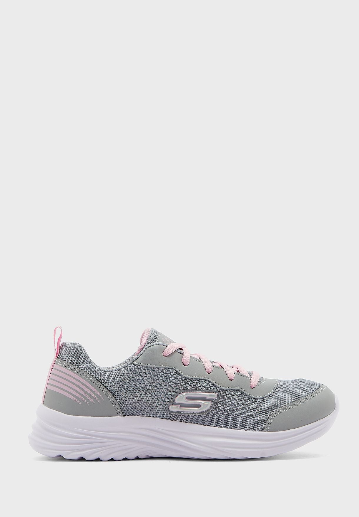 Sporty style and feet-loving comfort combine in Skechers Dreamy Dancer. This lightweight lace-up features a breathable mesh and synthetic upper with a cushioned insole.