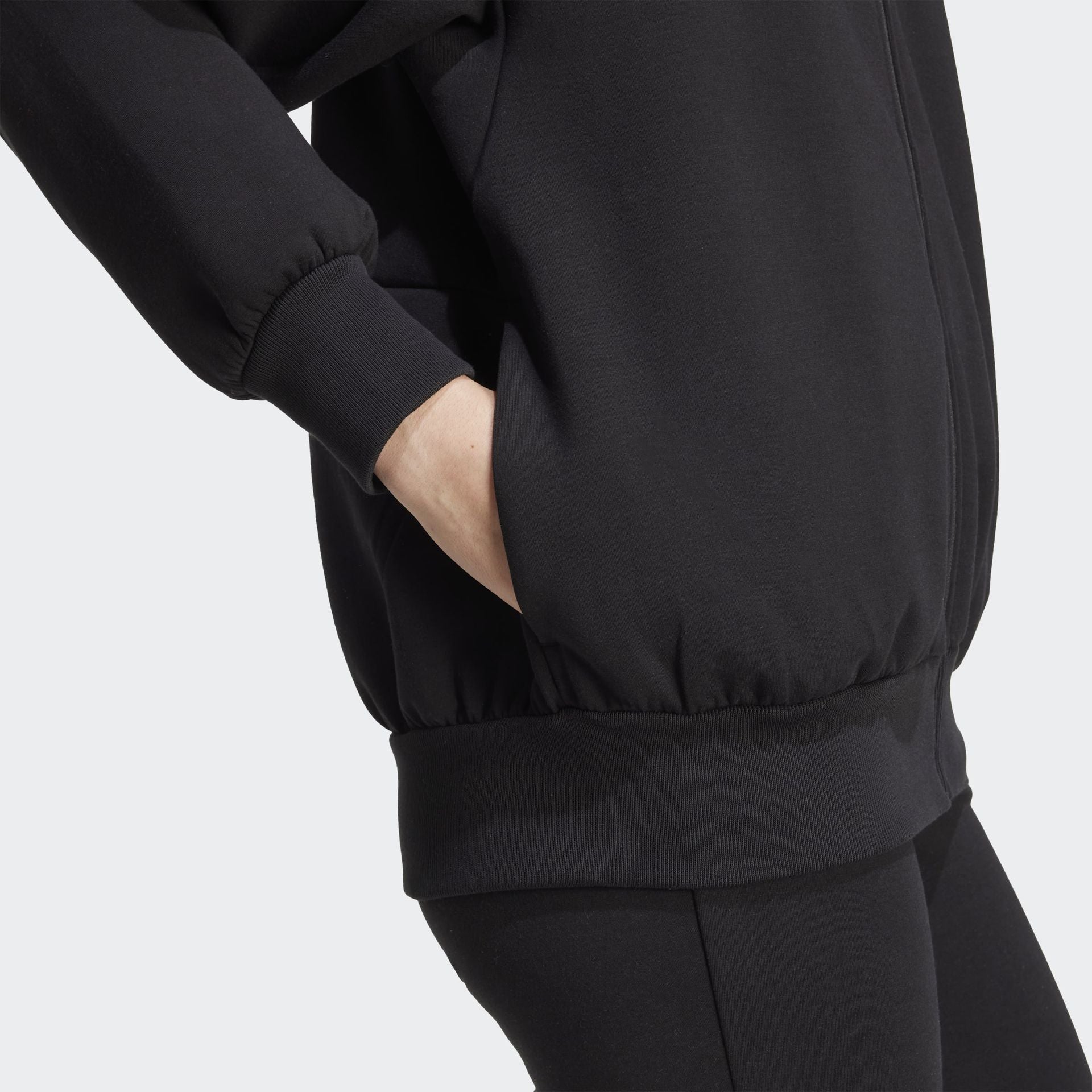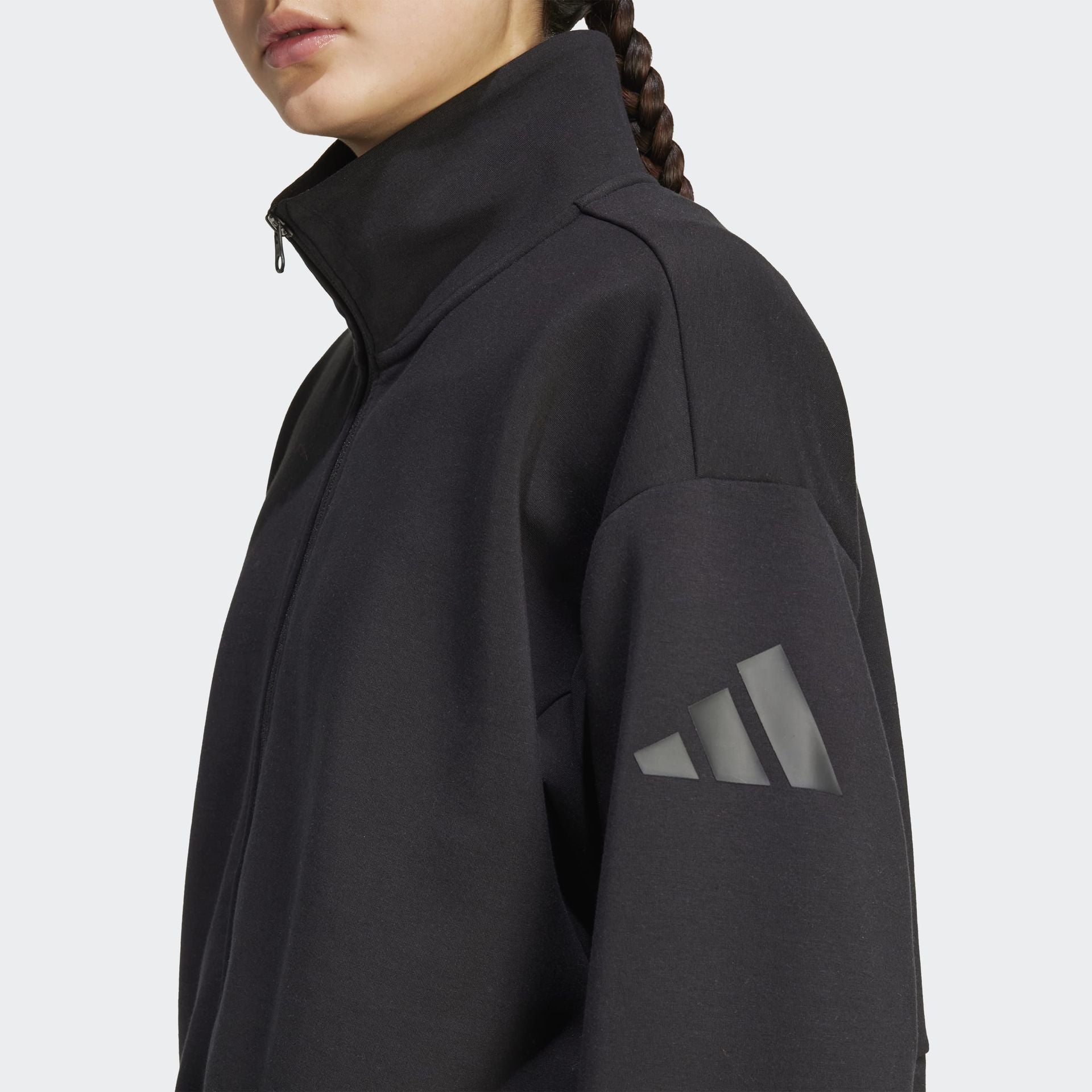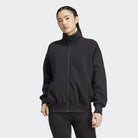 This adidas full-zip top is made from soft peached fabric for a cosy feel. The loose shape and extended length make it the perfect layering piece for a leisurely, laid-back look. A stand-up collar and front zipper let you adjust the coverage as you go about your day.