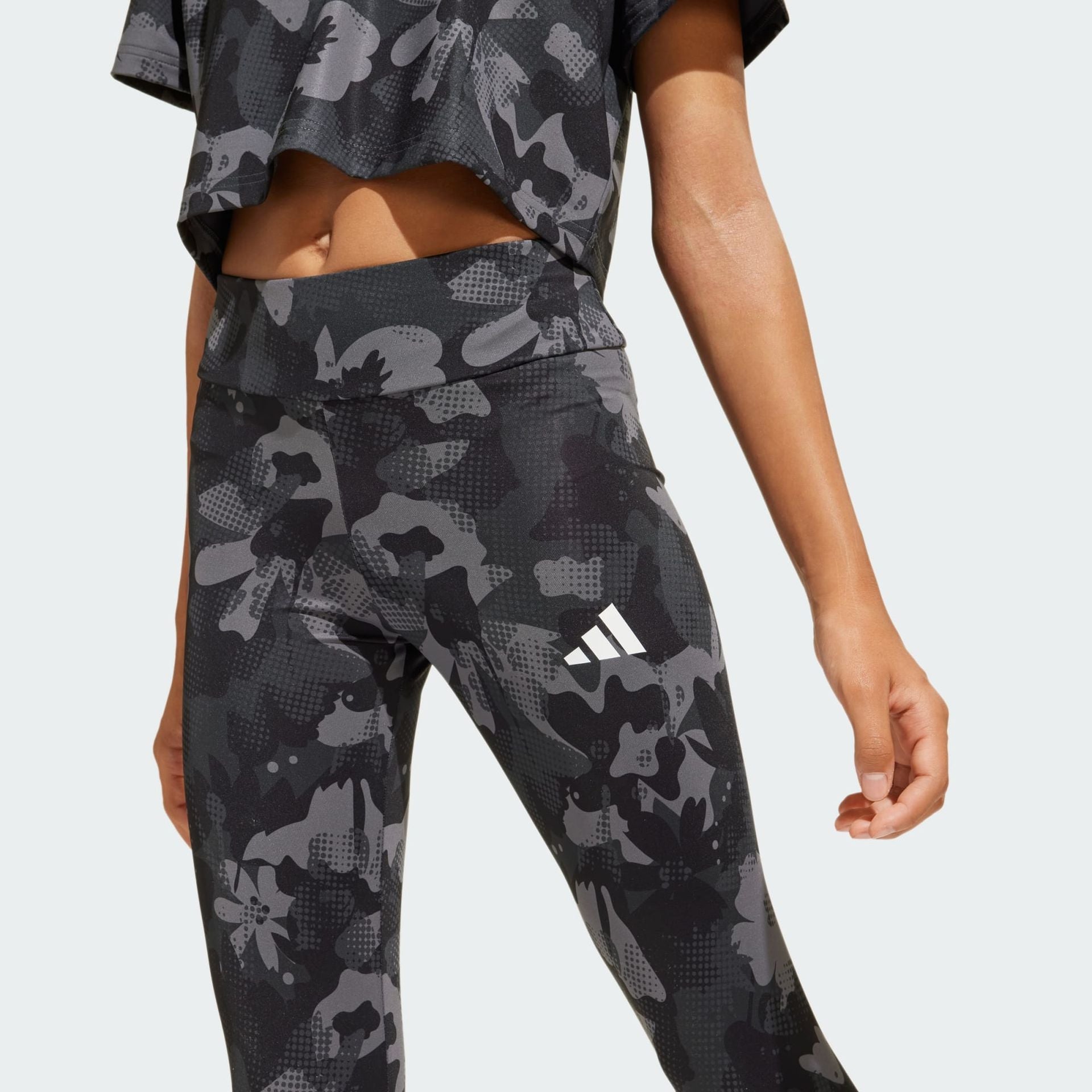 TRAIN ESSENTIALS FLOWER PRINT LEGGINGS KIDS - Grey Five / Grey Six / Carbon / Black