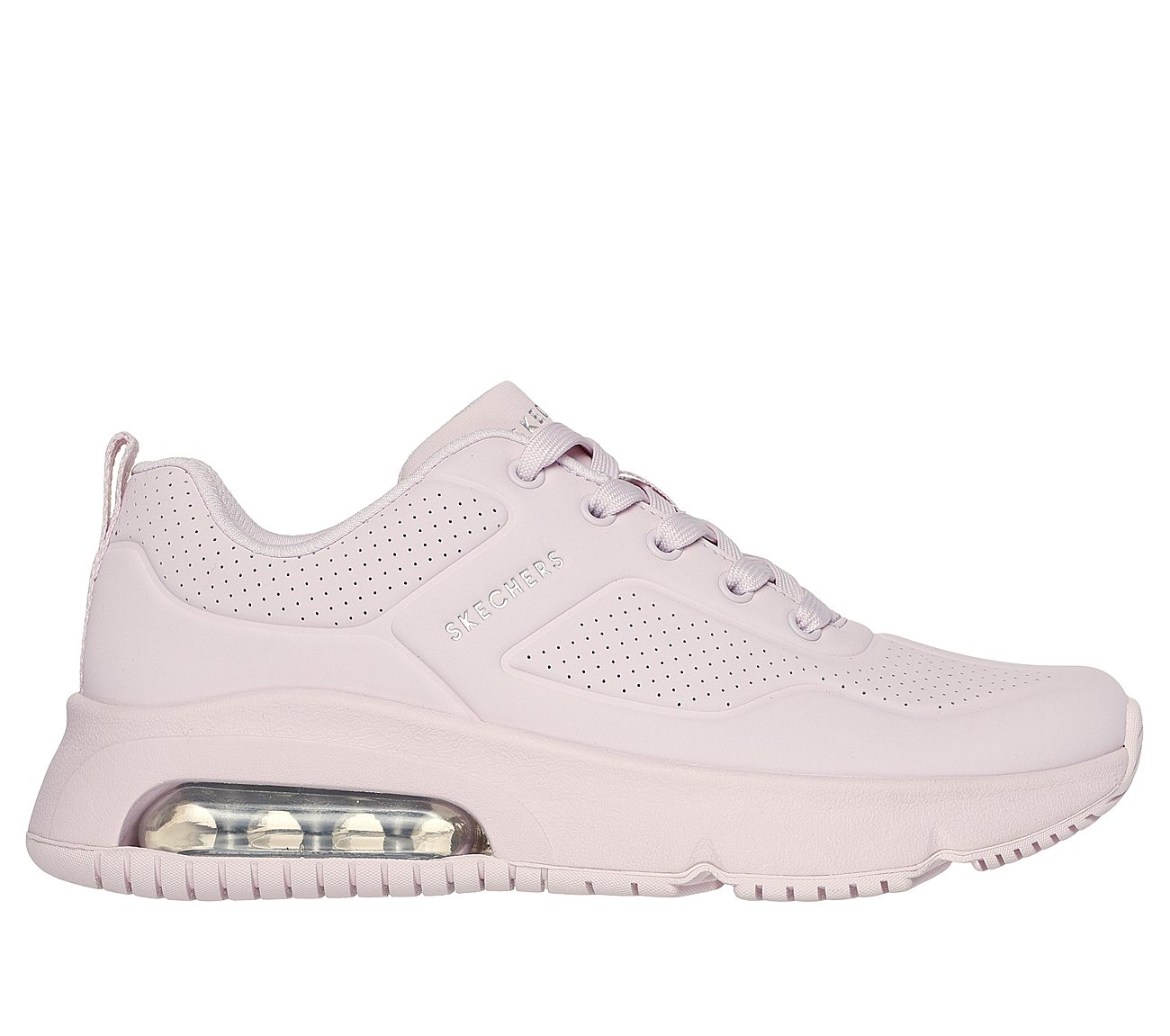 Less wedge and even more Skech-Air® visibility are here in Skechers Street™ Uno Evolve - Infinite Air. This trendy lace-up sneaker levels the midsole of our classic Uno while expanding the midsole's Skech-Air® airbag. This evolved style is complemented by a perforated durabuck upper and our comfortable cushioned Skechers Air-Cooled Memory Foam® insole.