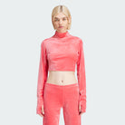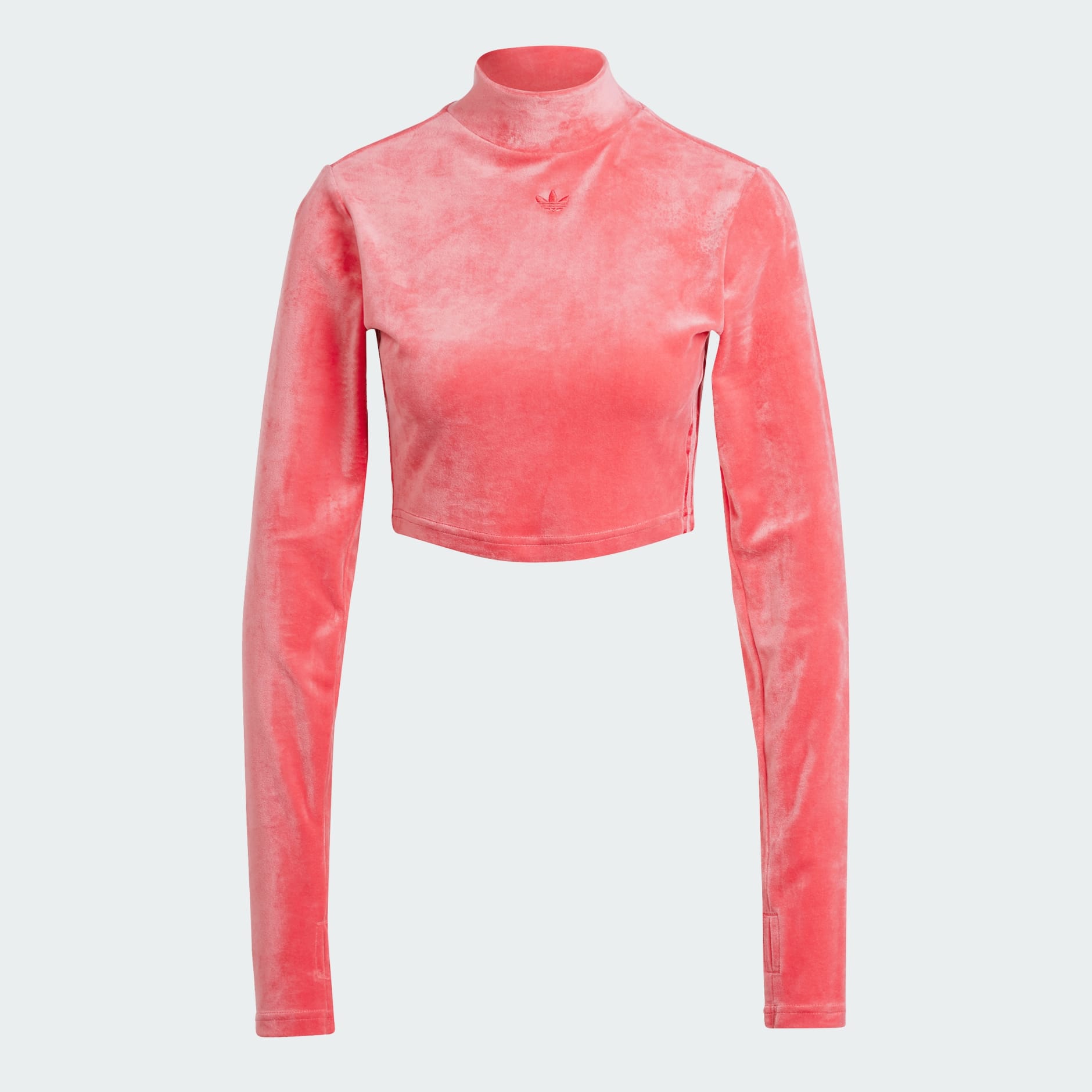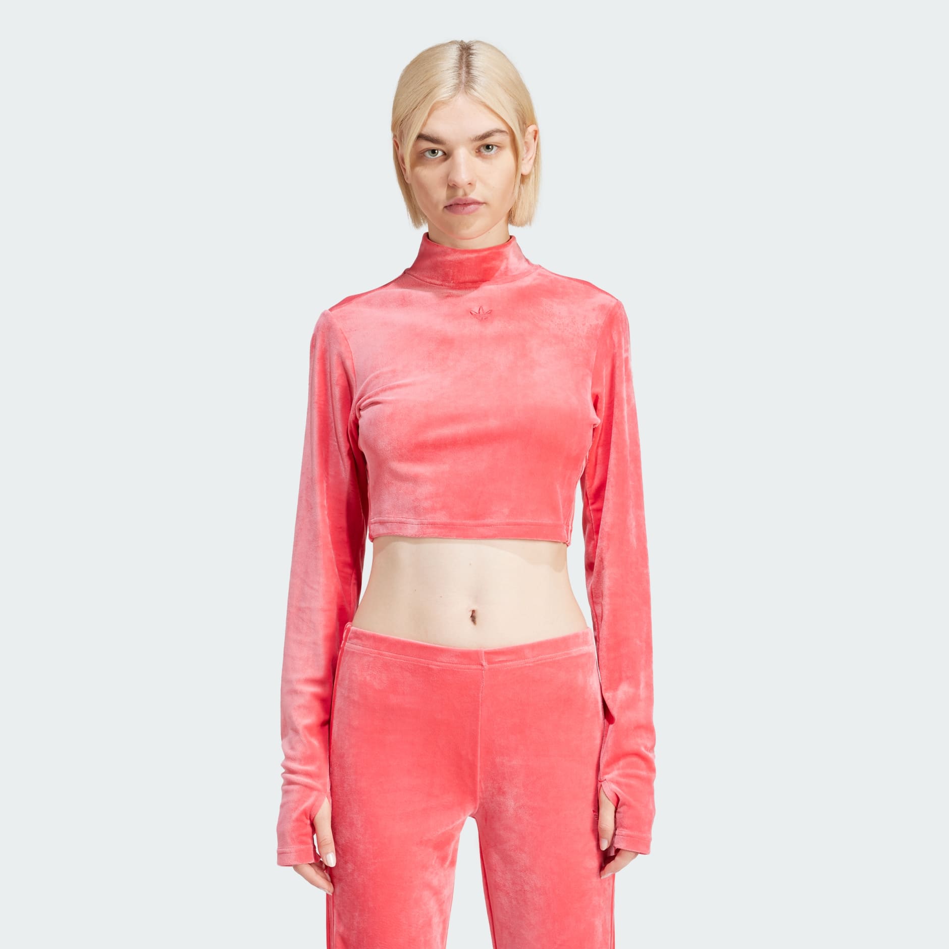 Soft velvet with a slim fit and long sleeves gives this adidas top a modern twist on a luxurious look. Its cropped length makes it the perfect candidate to pair with high-waisted pants that have a wide-leg silhouette. A mock neck gives you extra coverage and a place to let necklaces shine. This product is made with at least 70% recycled materials. By reusing materials that have already been created, we help to reduce waste and our reliance on finite resources and reduce the footprint of the products we make.